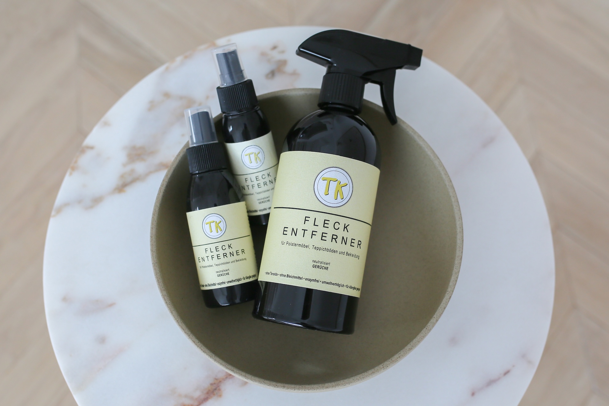 Der TK-Fleckentferner entfernt mühelos Rotwein, Kaffee, Fett, Gras und viele weitere Verschmutzungen – ganz ohne aggressive Chemikalien. Dank seiner innovativen, tensid- und bleichmittelfreien Formel ist er besonders umweltfreundlich und schonend zu Textilien, Polstern und Teppichen. Gleichzeitig neutralisiert er unangenehme Gerüche und sorgt für hygienische Frische.